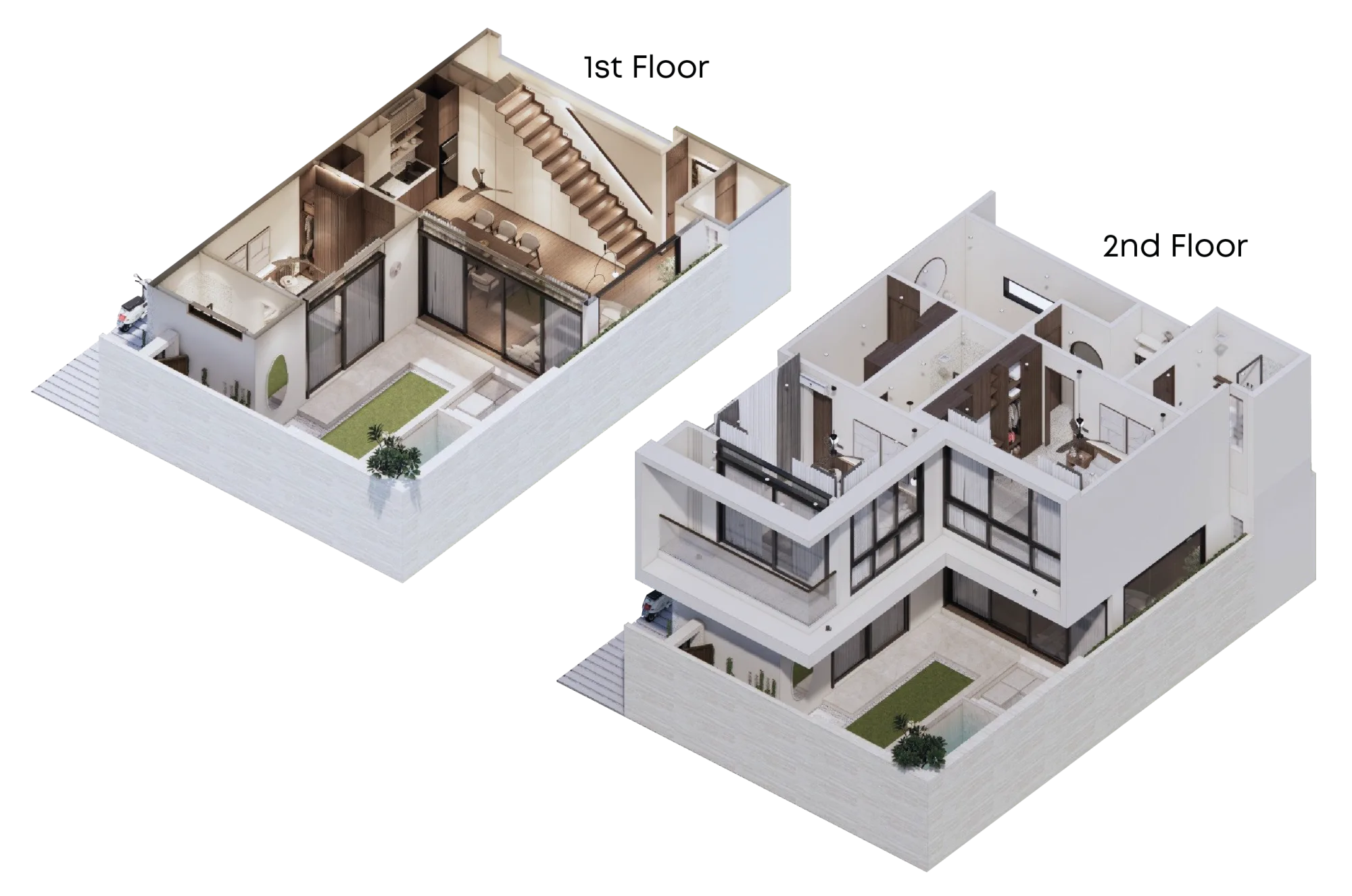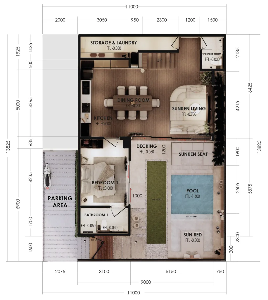 The ultimate choice for larger groups or families who need extra space. The 3BR+ villa features an additional bedroom or a multi-purpose area that can be customized to your needs. With an elegant design, a modern kitchen, and a spacious outdoor area with a private pool, this villa offers a more luxurious and flexible stay for guests.